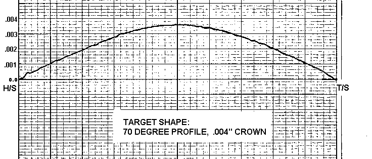 for a 70 degree profile shape with a .005" concave setting. The roll end limits