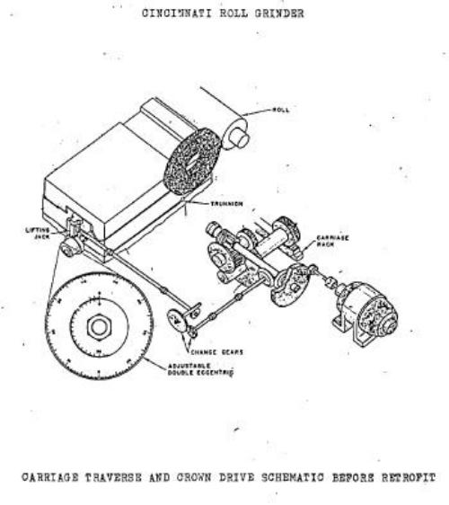 mechanical crowner assembly. The carriage motor drives through a set of
