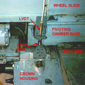 The LVDT is mounted to measure the tilting motion of the camber base, and