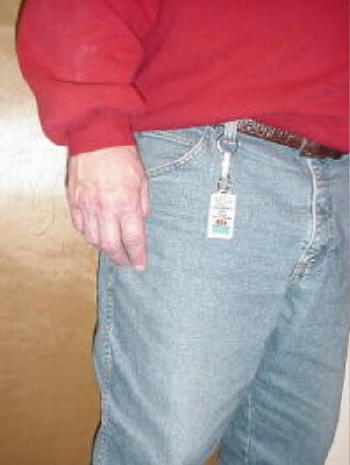 here, would typically attach to the operator’s belt or clothing (like a pager)