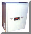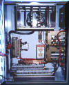 The SCA control station is a 20" high x 16" wide x 10" deep 14 gauge Nema-12 enclosure, and is usually mounted on the floor for traveling table grinders, and on the carriage for traveling carriage grinders. It typically contains the crowner summing board, LVDT conditioner board, power supplies, indicating lights, digital volt meter, cables, and other miscellaneous items. The cabinet is equipped with a circulating fan and filtered louvers for cooling. Terminal strips are provided for all external connections. Auxiliary power outlets are standard along with an EMI filter and circuit breaker.