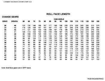 change gear selection table, and the bottom one is the chart for a 70 degree