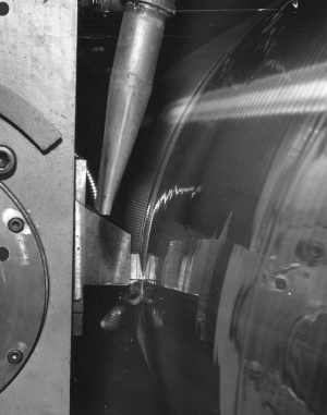 turning a roll is not unlike that for grinding. The tool infeed is accomplished
