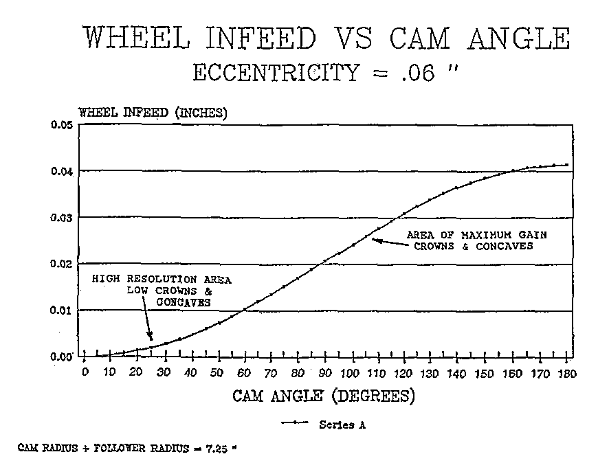relationship of the wheel infeed as a function of the cam angle, for a typical